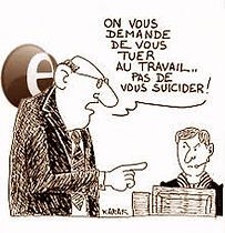 « Cinq suicides en quinze jours chez France Télécom », le Figaro du 15 septembre 2010 ; « France Telecom : un employé se suicide », le Figaro du 5 juin 2013 ; « Nouveau suicide à la Poste », France Inter, le 11 octobre 2013 ; « Un salarié de Renault se suicide sur son lieu de travail », le Figaro, le 24 avril 2013 ; « Une employée de La Poste se suicide sur son lieu de travail », le Monde du 26 août 2013 ; « Qu’est-ce qui a poussé mardi dernier un homme de 52 ans à mettre fin à ses jours en se pendant sur son lieu de travail dans un bureau du central téléphonique d’Amboise en Indre-et-Loire ? », AgoraVox, le 28 février 2008 ; « Tentative de suicide d’une employée d’hôtel : les conditions ‘inhumaines’ dans le privé dénoncées », L’Express Maurice du 1er août 2014 ; « Police, les transferts poussent au suicide », Mauritius News du 1er décembre 2009, « Mon collègue de LIDL s'est suicidé: il faisait le travail de 3 personnes. Trop de pression », l'Obs du 5 juin 2015.